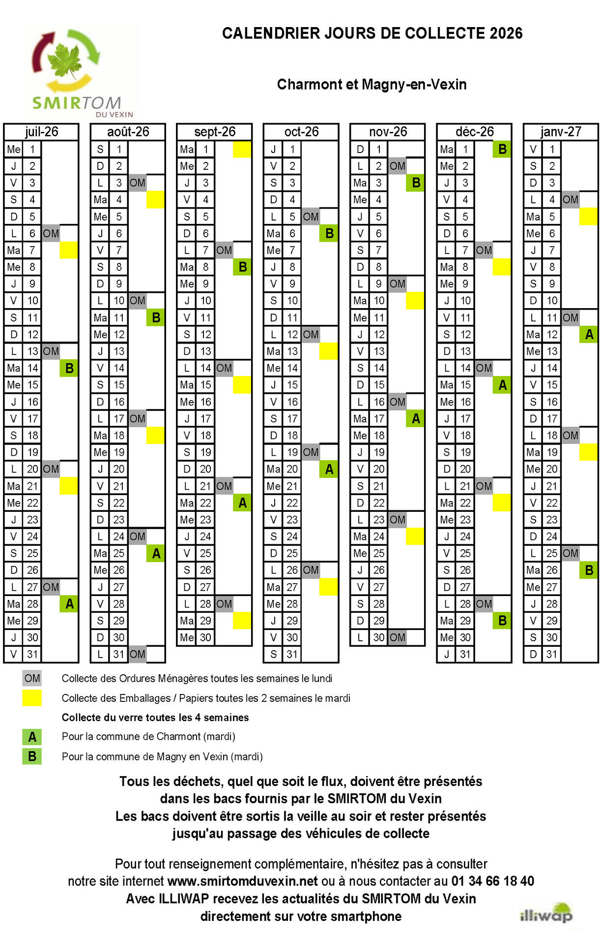 Retrouvez le calendrier de collecte des déchets 2026
